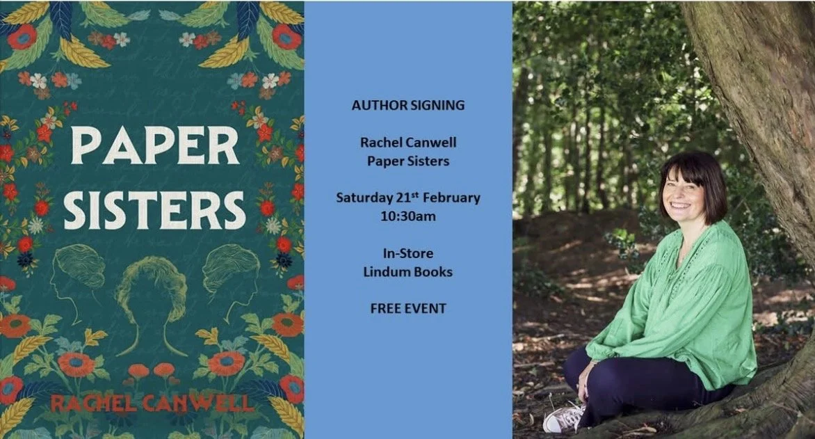 Rachel Canwell will be instore to chat and sign copies of her new novel Paper Sisters.